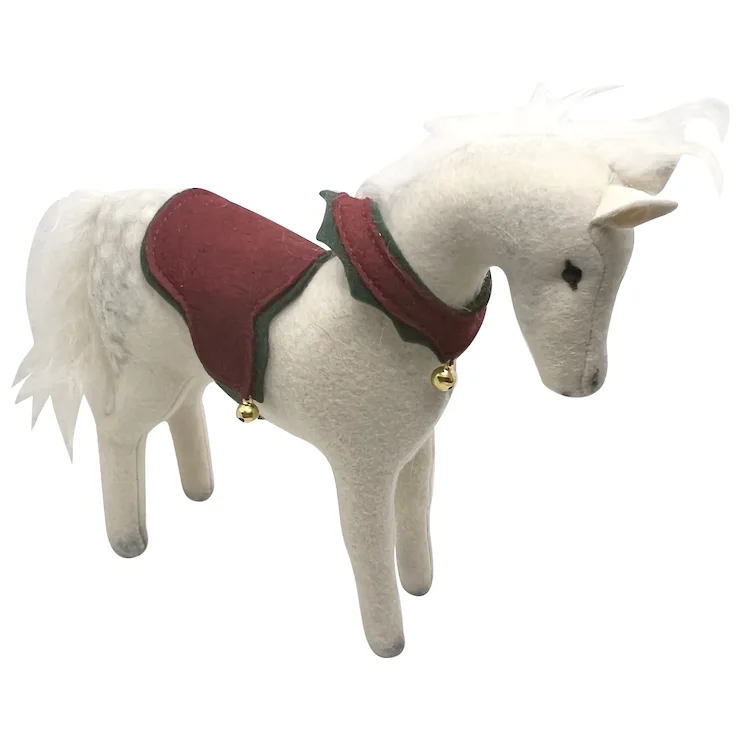 — Made in wool felt in the style of the earliest of the Steiff horses – he’s stunning