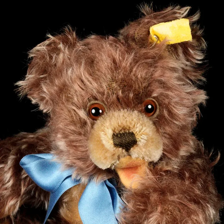 OK, having covered the preliminaries, I have to tell you about Zotty’s condition. He definitely seems to have been loved by a former young guardian. The main evidence of that is the hair missing from his head and face. He has some all-over slight wear, but the main loss is more serious, which is perhaps the result of thousands of kisses. 😉