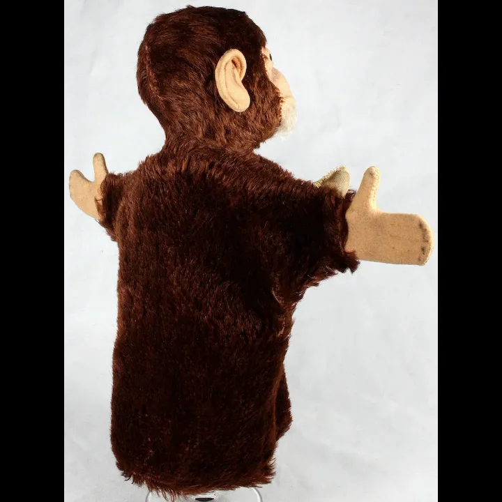 I guess the best way to describe the difference is that these early post-war models are smaller, and they have a baby-like presentation. Their heads and faces are smaller, with commensurate smallness in their finger tubes, and their ears are larger in proportion to their heads. These days, parents are much more cautious about letting young children play with certain toys, and a toy like a puppet would be handled by the parent to entertain a child who looks on and perhaps interacts with the puppet, but the puppet is controlled by the adult. In contrast to the usual current parenting philosophy, I believe this Jocko was designed to be USED by the child to entertain himself.