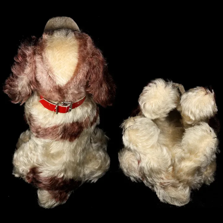 Finally, and this is condition ”issue” is always the lowest in my hierarchy of concerns, I will tell you that Cockie no longer “barks.” You can feel her squeaker depress when you press her belly, but no sound comes out except the crunch of excelsior. As I always remind you, I am assuming her new guardian will be an adult collector, who would display her in a vitrine or other protected environment, and when you, or anyone else, passed by and looked at her admiringly, you would not know whether she barked or not.