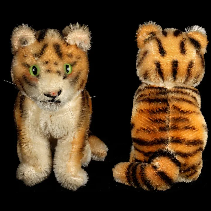 Little Tiger joins several relatives in my shop. Unlike all his relatives, Tiger is not anyone’s big brother or little brother. He was made only in this size and only from 1951 to 1961. Those dates account for two series—one made between 1951 and 1958, with article number 3310, and the other made from 1959 to 1961, with article number 3310,00. Because he has lost his IDs, I cannot be more precise about his date of birth. I guess it doesn’t matter all that much because that span of years was so short. In either case Tiger has passed the 60-year mark, and the two series have the same “book value.”
