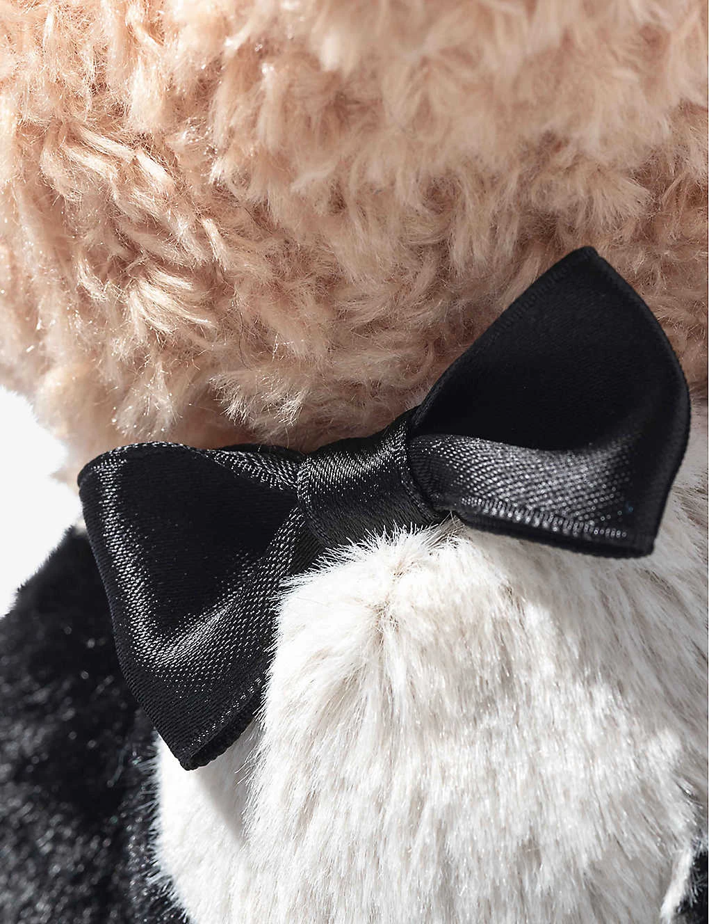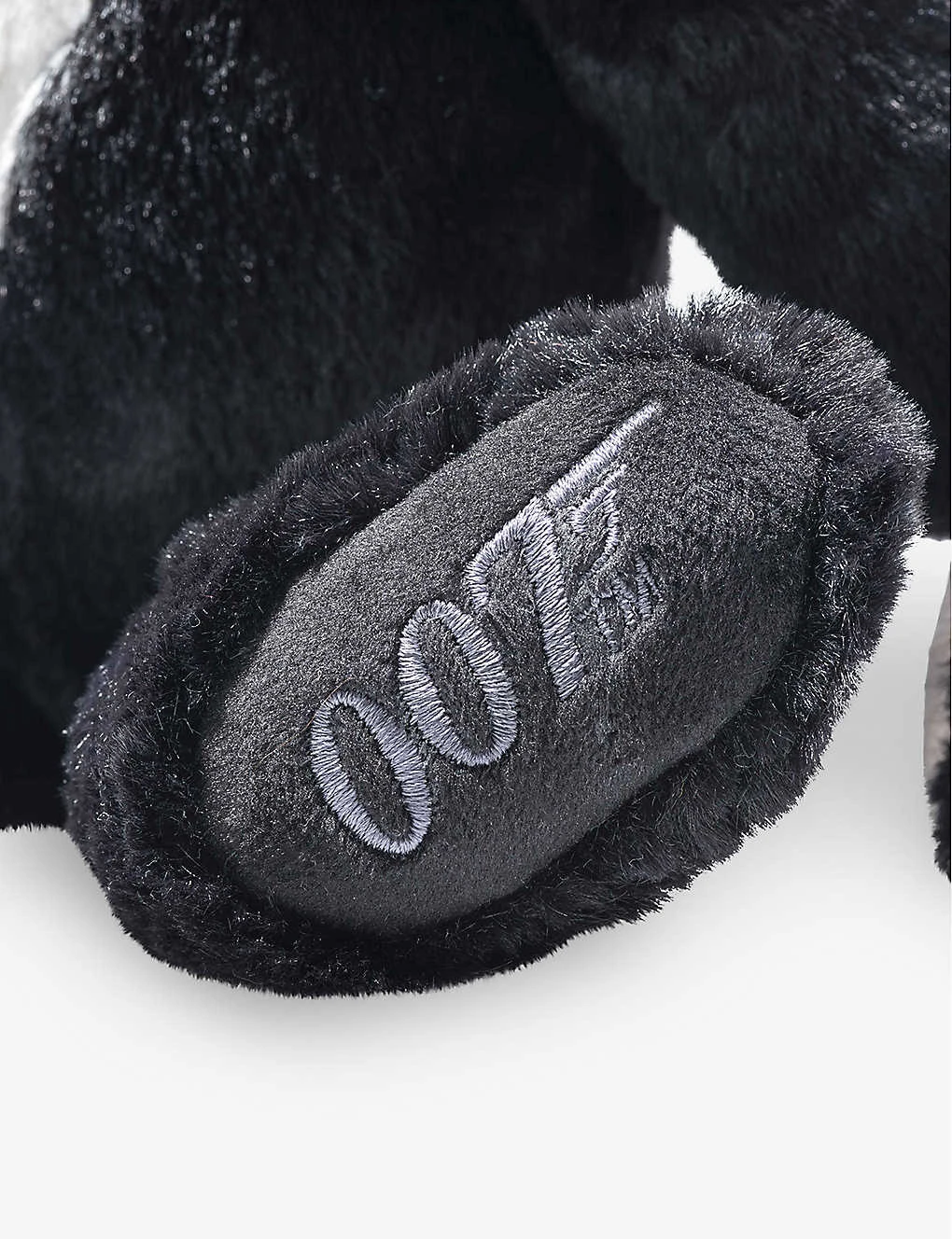 - James Bond theme, hand embroidered nose and mouth, branded stainless steel button on ear, bow-tie and suit jacket at front, 007 logo tag at shoulder, logo embroidered on right foot, movable head, arms and legs