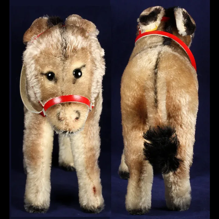 Even if Esel were made in the last possible year of his series, he would already be well over 60 years old, and there is nothing about him that suggests such an age. To the contrary, I would say that he was in excellent-plus condition. I have gone down a notch from “near mint,” since Esel’s squeaker is silent, unless you give him a big whack in the belly; it does not produce a sound by the intended method of pressing in on his belly.