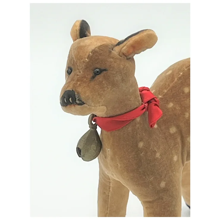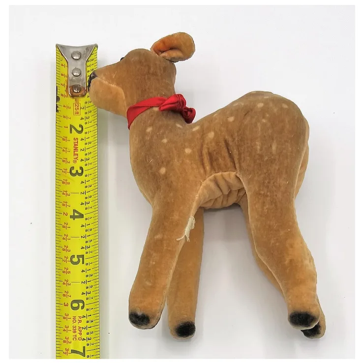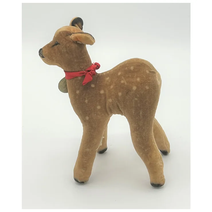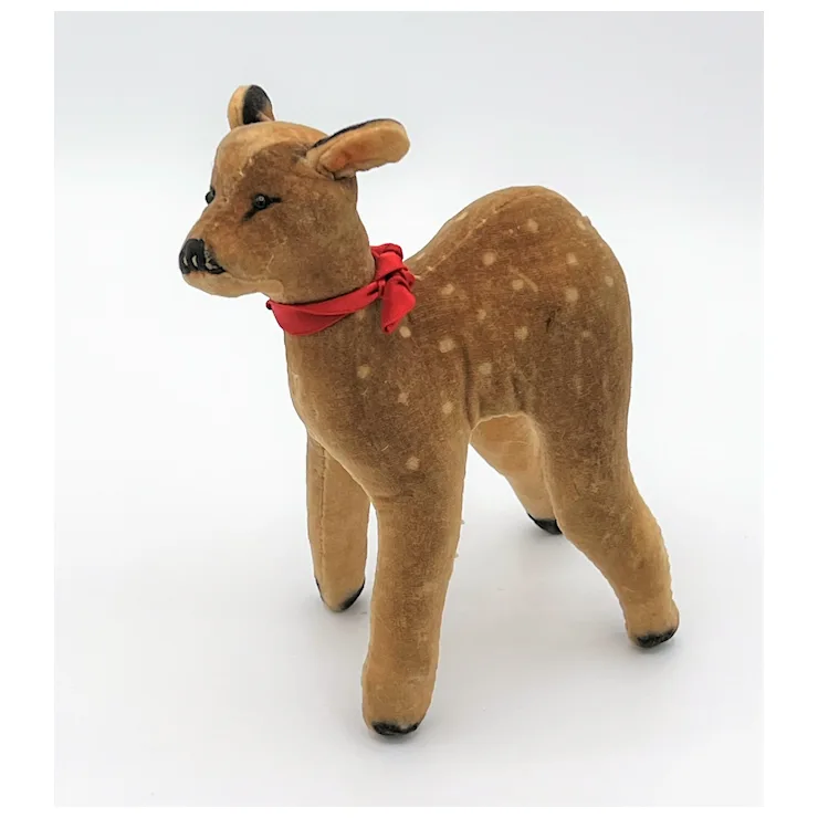 Vintage early-to-mid-century Japanese Fawn – 7″ – velveteen spotted young deer, marked/tagged “Japan”